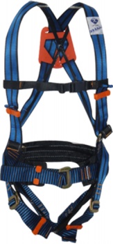 Arnés completo, 3 puntos de enganche, regulable en hombros y piernas.